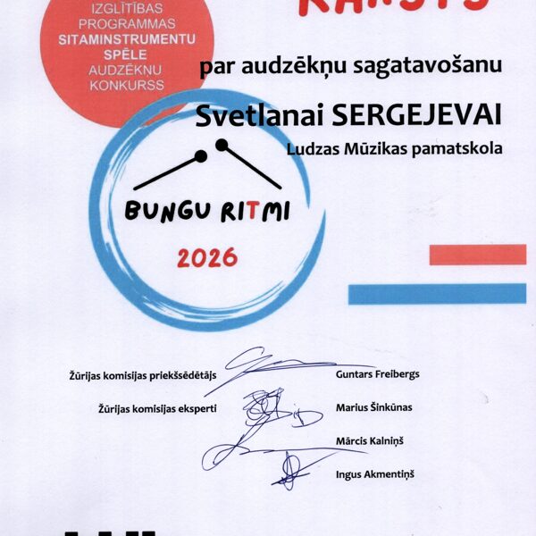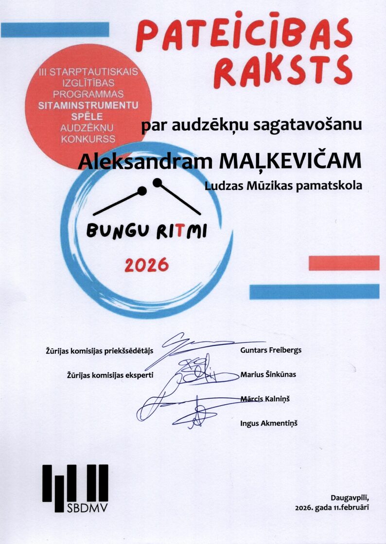 III Starptautiskais izglītības programmas Sitaminstrumentu spēle audzēkņu konkurss “Bungu ritmi 2026”, Daugavpils 11.02.2026