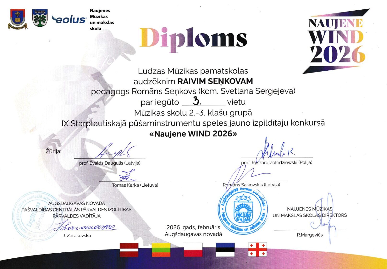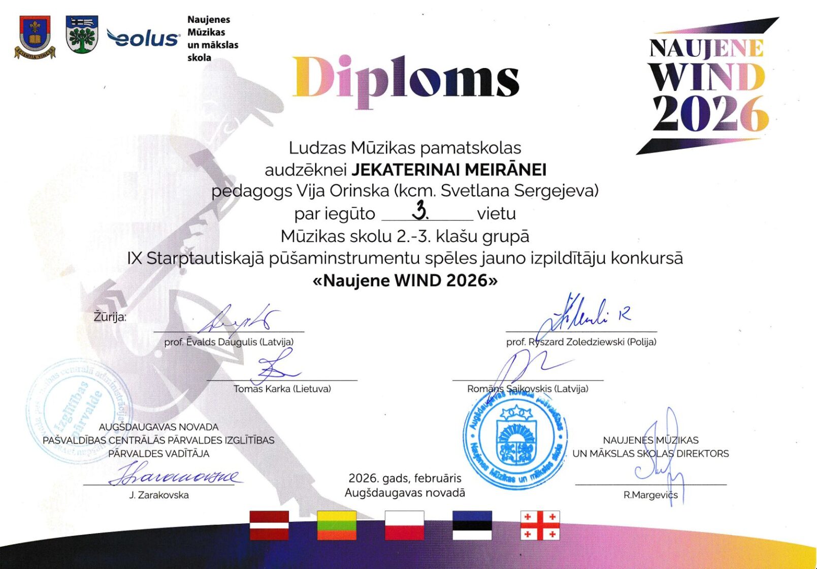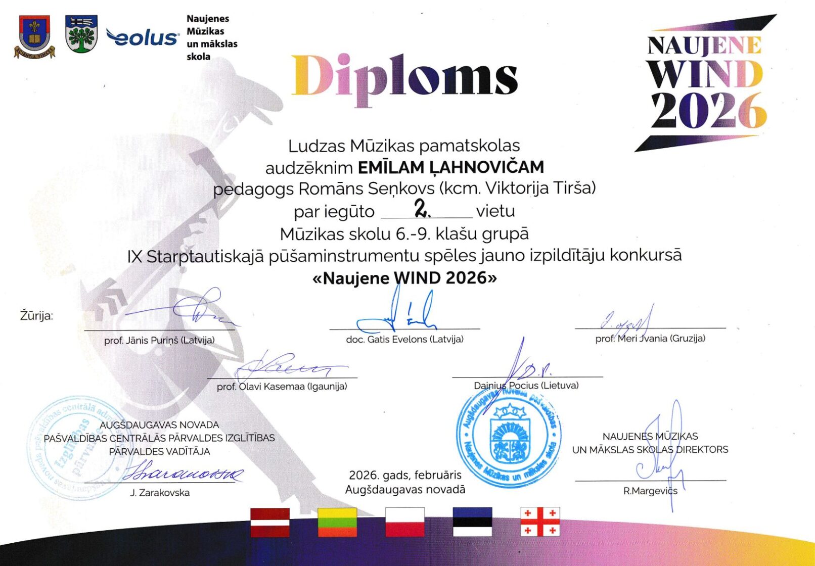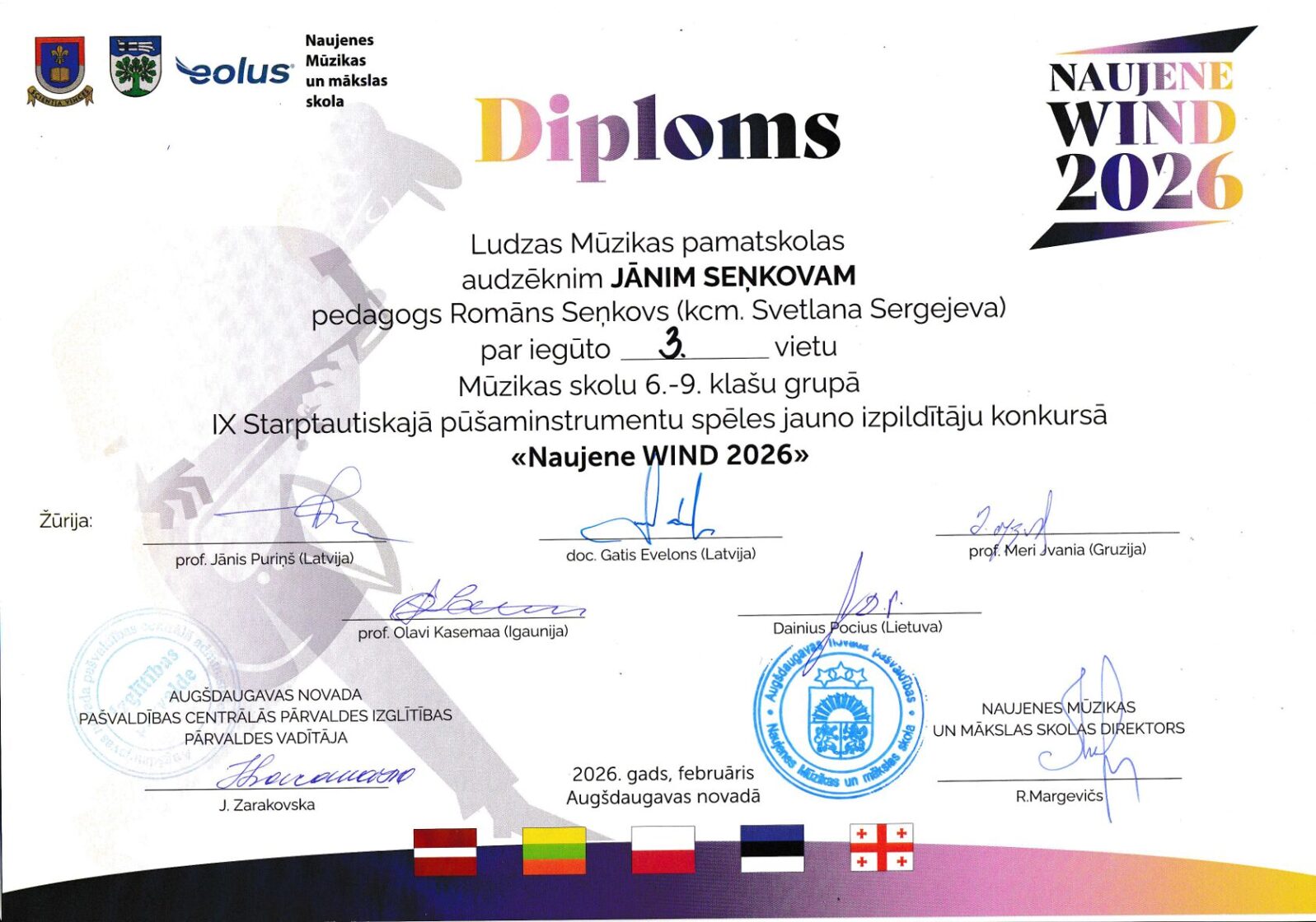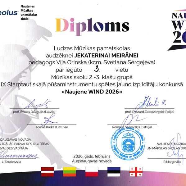 IX Starptautiskais pūšaminstrumentu spēles jauno izpildītāju konkurss "Naujene WIND 2026" 26.02.2026, Daugavpils